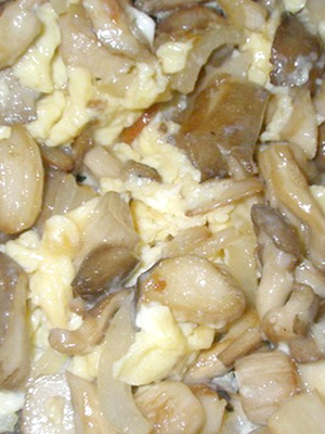 - Champignons marinés frits avec des oignons, des œufs et des pommes
