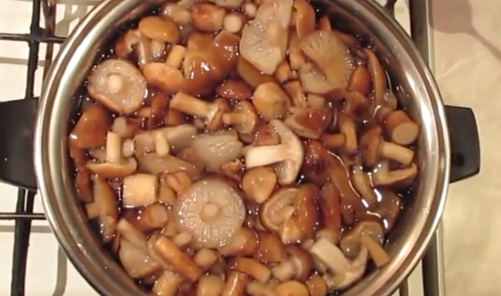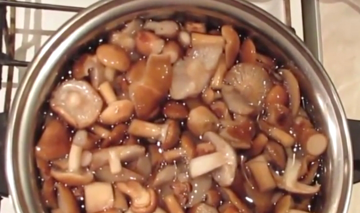 - Les champignons au miel après la préparation préliminaire doivent être bouillis pendant 15 minutes. Pour cela, les champignons sont immédiatement mis à bouillir.