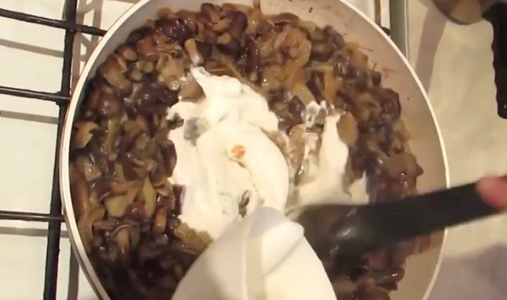 Comment faire cuire des champignons, frits avec de la crème sure: recette avec vidéo