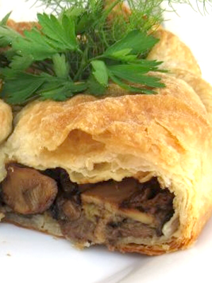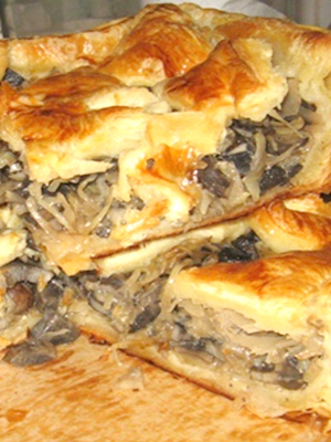 - Tarte diététique aux champignons et oignons au miel dans une pâte feuilletée