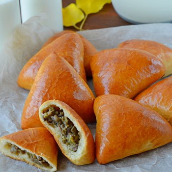 Les tartes aux champignons au miel et le riz sont fabriqués à partir de pâte sans levure. Pour cette option, les champignons au miel doivent être frits jusqu'à ce qu'ils soient dorés. Le riz pour la cuisson doit être à grains longs et assurez-vous qu’il n’est pas digéré.
