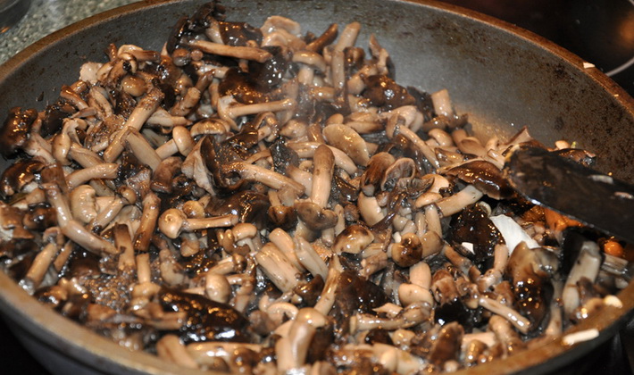 Les champignons de miel sont bouillis pendant 20 minutes dans de l'eau salée. On les laisse égoutter et les faire frire dans l'huile jusqu'à ce qu'ils soient dorés.