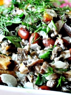 La recette pour un plat de champignons marinés en forme de salade est savoureuse et épicée. En plus des corps de fruits en conserve eux-mêmes, des pommes de terre et des oignons sont également pris, et la salade finie est assaisonnée avec des herbes hachées et de la crème sure.