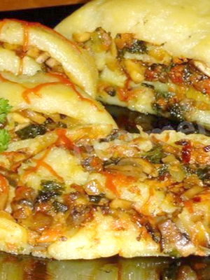- Les poivrons sont fourrés aux champignons et la viande, la crème sure et ½ part de fromage râpé sont mélangés et la garniture est arrosée de poivrons.