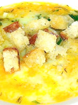 - Faire bouillir pendant 10 minutes, verser la crème sure mélangée à des herbes hachées et porter à ébullition la masse de pommes et de champignons.