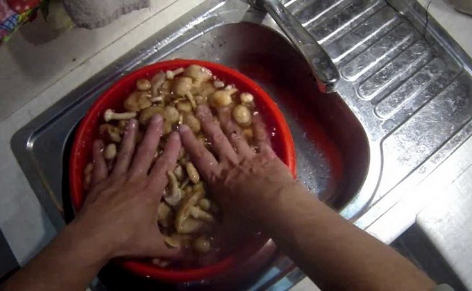 Pour débarrasser les champignons de la saleté et des débris, couper et laisser bouillir dans de l'eau salée pendant 20 minutes.
