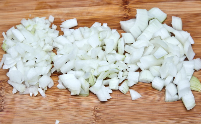 Coupez l'oignon en cubes ou en demi-anneaux minces (à votre guise), puis faites-les frire dans l'huile jusqu'à ce que vous soyez prêts.