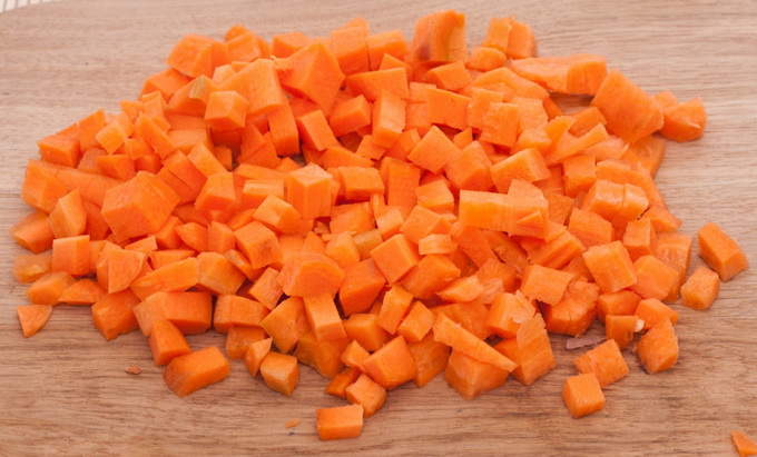 Épluchez et coupez les carottes en cubes (vous pouvez les râper pour les rendre plus rapides). Ajoutez à l'oignon et faites frire ensemble pendant 5 minutes.