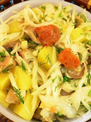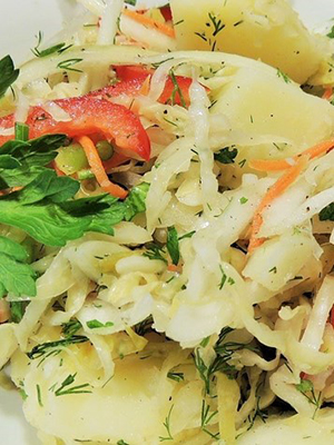 - Salade de champignons, pommes de terre, oignons et choucroute