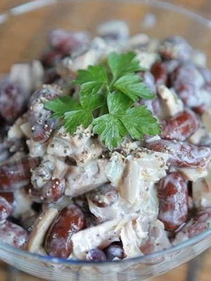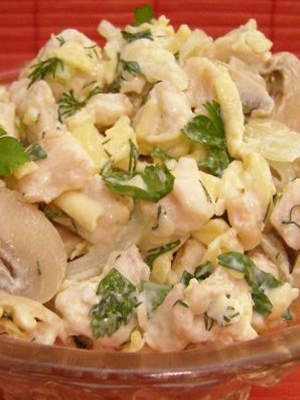 - Salade de poitrine de poulet avec champignons, concombres et noix frits