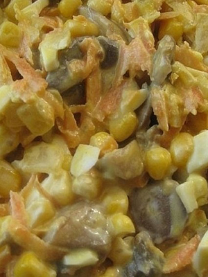 Salade aux champignons frits, maïs et mayonnaise