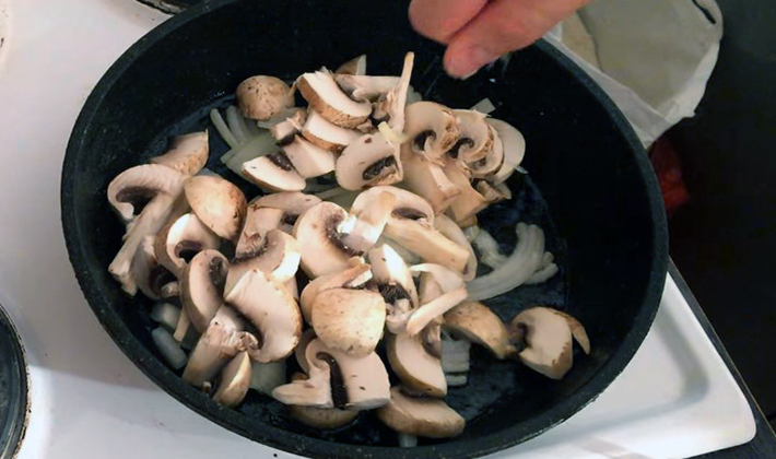 - Couper les champignons en tranches et les faire revenir dans de l'huile végétale.