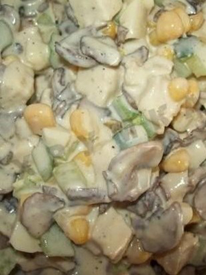 - Salade aux champignons frits, maïs et mayonnaise