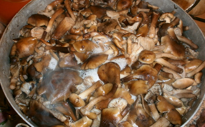 Nous débarrasserons les champignons des débris forestiers et les ferons bouillir dans de l’eau avec de l’acide citrique et du sel pendant environ 20 minutes. Jetons-le dans une passoire et laissez l'excès de liquide s'écouler.