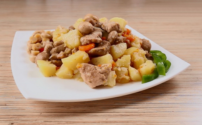 Grâce à cet «assistant» de cuisine, le processus de cuisson est assez simple. Et pour que la viande aux champignons soit juteuse et appétissante, faites-la cuire sans graisse végétale.