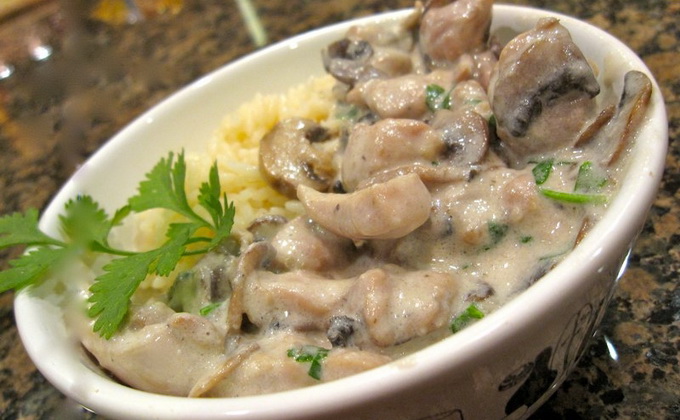 - Porc aux champignons au miel et tomates en sauce à la crème sure