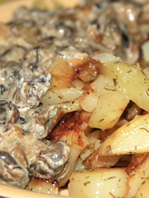 - Bolets braisés avec pommes de terre et crème sure