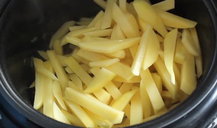 - Nous nettoyons les pommes de terre, les lavons dans l'eau de la pollution et les coupons en lanières.