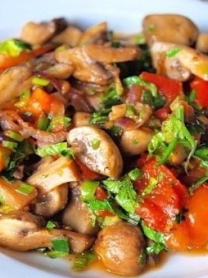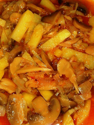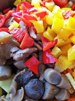 - Épluchez et coupez les pommes de terre, les oignons et les poivrons de la manière la plus pratique, coupez les champignons bouillis en tranches.