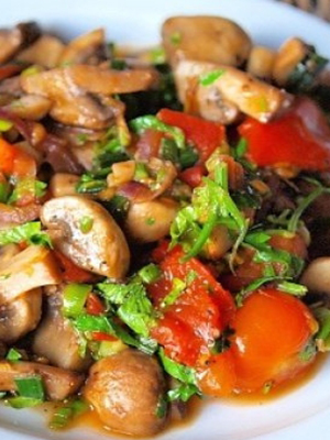 Après 5 minutes ajoutez des champignons frais pelés, qui doivent être hachés grossièrement au préalable.