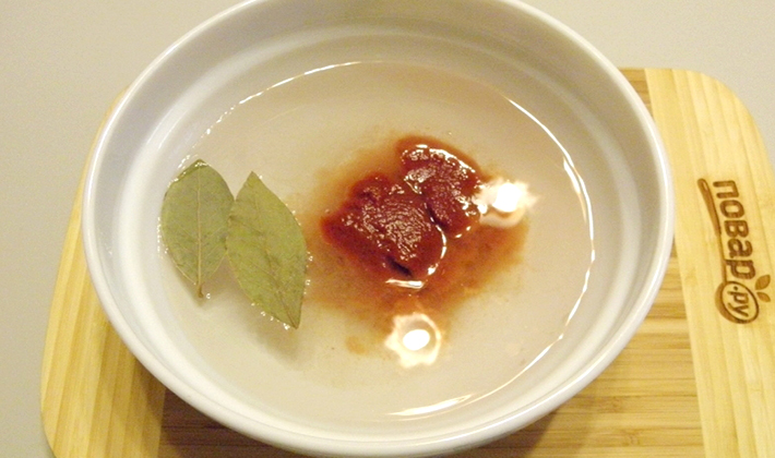Dans un verre d'eau, diluez la pâte de tomates et ajoutez l'ail haché.