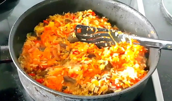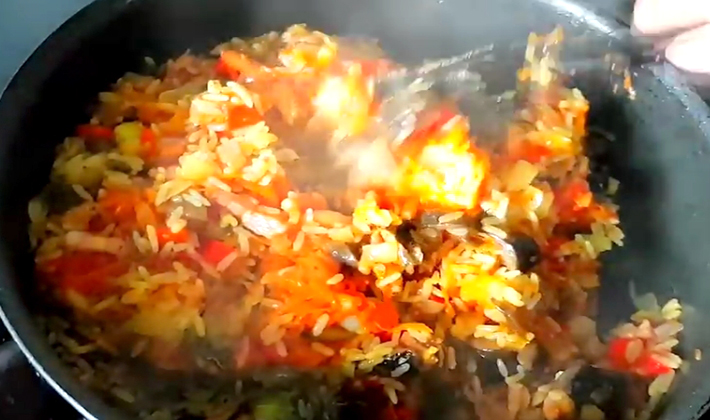Après quelques minutes, ajoutez le riz au ragoût, remuez et laissez mijoter à feu doux pendant 20-25 minutes.