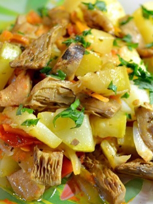 Le ragoût de champignons peut être préparé en ajoutant divers ingrédients, notamment des légumes, des céréales et de la viande. Dans ce cas, l'utilisation de pommes de terre et de riz est proposée.