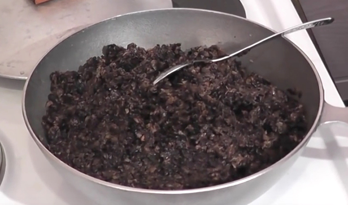 - Égoutter, laisser refroidir complètement, broyer et faire frire jusqu'à coloration dorée.