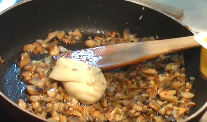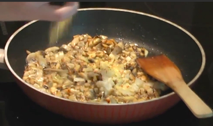 - Hachez l'oignon, ajoutez-le aux champignons et faites-le frire jusqu'à ce qu'il soit prêt, laissez-le refroidir.