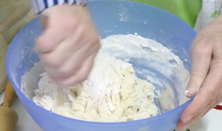 - La pâte est préparée de la manière habituelle: tous les ingrédients sont combinés et malaxés à la main.