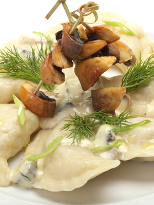 Une description étape par étape de la recette vous expliquera comment préparer des raviolis aux champignons et au bacon au safran.