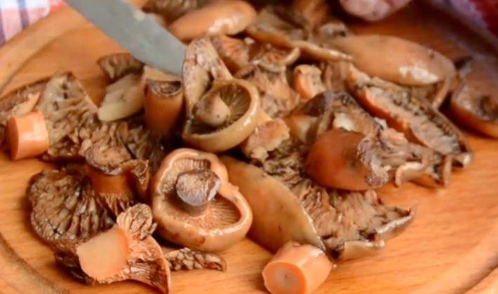 - Les champignons sont nettoyés des impuretés, les extrémités des cuisses sont coupées et lavées à l'eau.