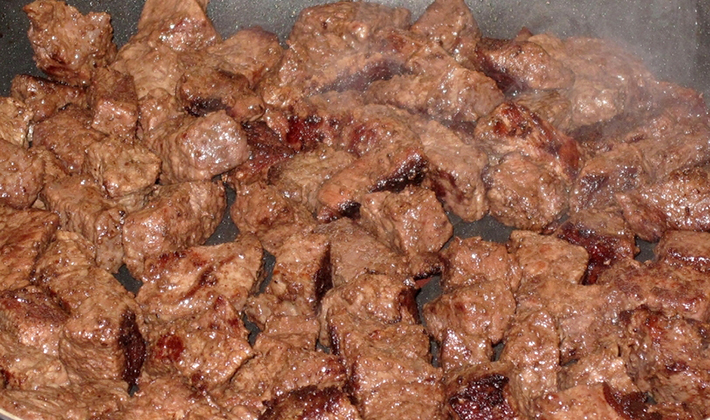 - La viande doit être frite à feu vif, ce qui préservera le jus à l'intérieur et fera des pièces d'une belle couleur dorée.