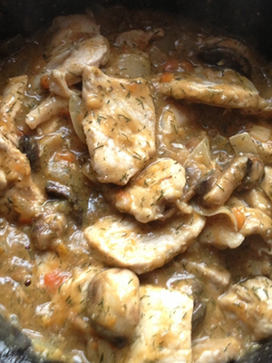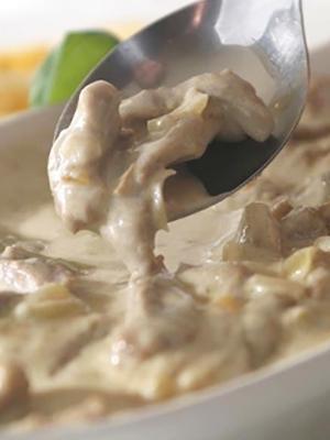 Même une petite partie de ce plat vous gardera rassasié pendant longtemps. Le gingembre et la viande à la crème sure sont un plat savoureux, parfumé, mais en même temps tendre. En accompagnement, vous pouvez préparer de la purée de pommes de terre. Si vous pensez que la viande de porc est trop «lourde», remplacez-la par de la volaille.