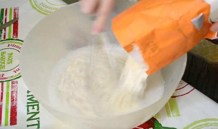 Puis verser la quantité nécessaire de farine et pétrir la pâte élastique.
