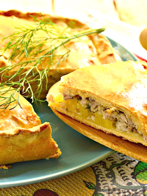 - Pincer les bords, graisser avec un œuf et mettre au four préchauffé pendant 35 minutes.