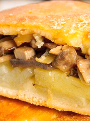 Une tarte aux pommes de terre et aux champignons est préparée comme suit: