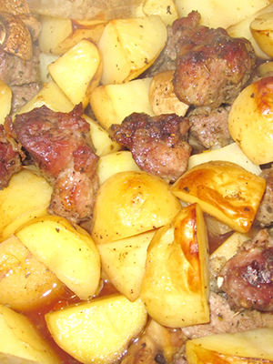- Saucisses au four avec pommes de terre et mayonnaise