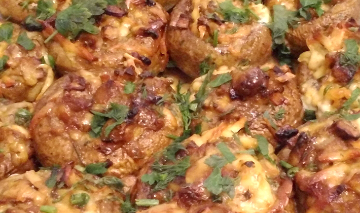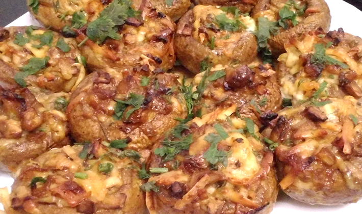 Préchauffez le four à 180 ° et mettez-le dans un plat allant au four avec les champignons et les pommes de terre pendant 40 à 45 minutes.