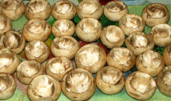 - Bien mélanger, farcir les chapeaux avec la farce cuite et les mettre dans des marmites graissées en plusieurs couches.