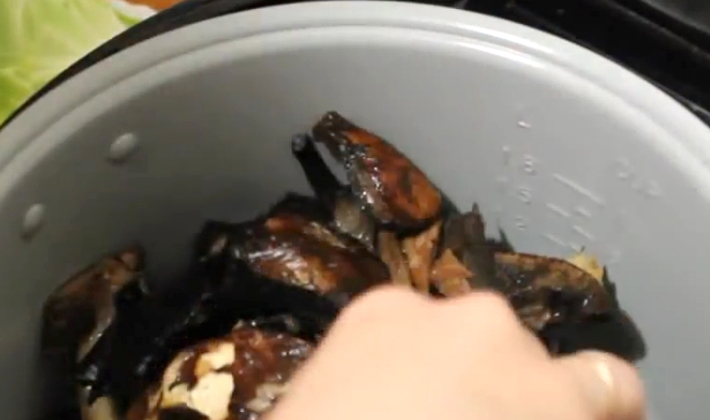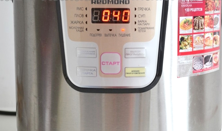 - Nous introduisons le poivron haché par des nouilles et sélectionnons le mode “Stewing” pendant 50 minutes sur le panneau multicuiseur.