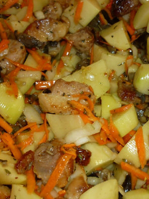 - Frire pendant 10 minutes. et introduisez des pommes de terre pelées et hachées.