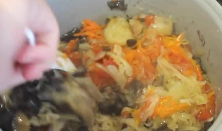 Après un bip, ouvrez le couvercle et placez le plat dans les assiettes de service. Si vous le souhaitez, les champignons avec du chou peuvent être décorés avec du persil ou de l'aneth hachés.