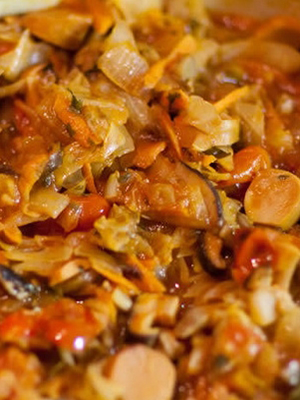 - Ajoutez tous les légumes hachés, salez au goût, ajoutez le sucre, le poivre moulu.