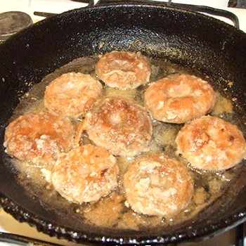 - Répartir immédiatement dans l'huile végétale chaude et faire frire des deux côtés jusqu'à coloration dorée.