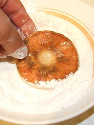 Pour faire de délicieux champignons, frits dans de la farine entière, suivez le conseil: ne pas plonger chaque champignon dans la farine. Les chapeaux de champignons safran doivent être placés dans un sac en plastique contenant de la farine et agités vigoureusement.