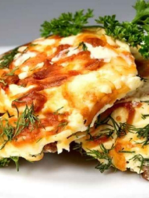 - Coupez l'oignon en demi-rondelles, faites-le frire dans une petite quantité d'huile jusqu'à ce qu'il soit doré et mélangez avec les champignons.