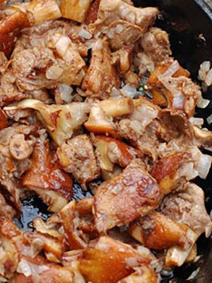 - Faites bouillir les champignons, coupez-les en tranches, salez, saupoudrez de farine et mettez les dans une poêle bien chaude avec de l'huile végétale.