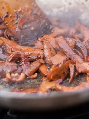 - Après avoir épluché et lavé les champignons, faites-les frire dans une poêle sèche jusqu'à ce qu'ils soient dorés.