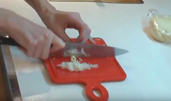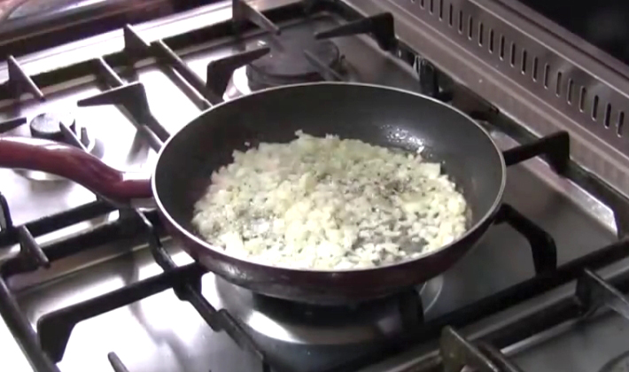 - Peler, hacher et faire revenir l'oignon avec l'ail jusqu'à ce qu'il soit tendre.